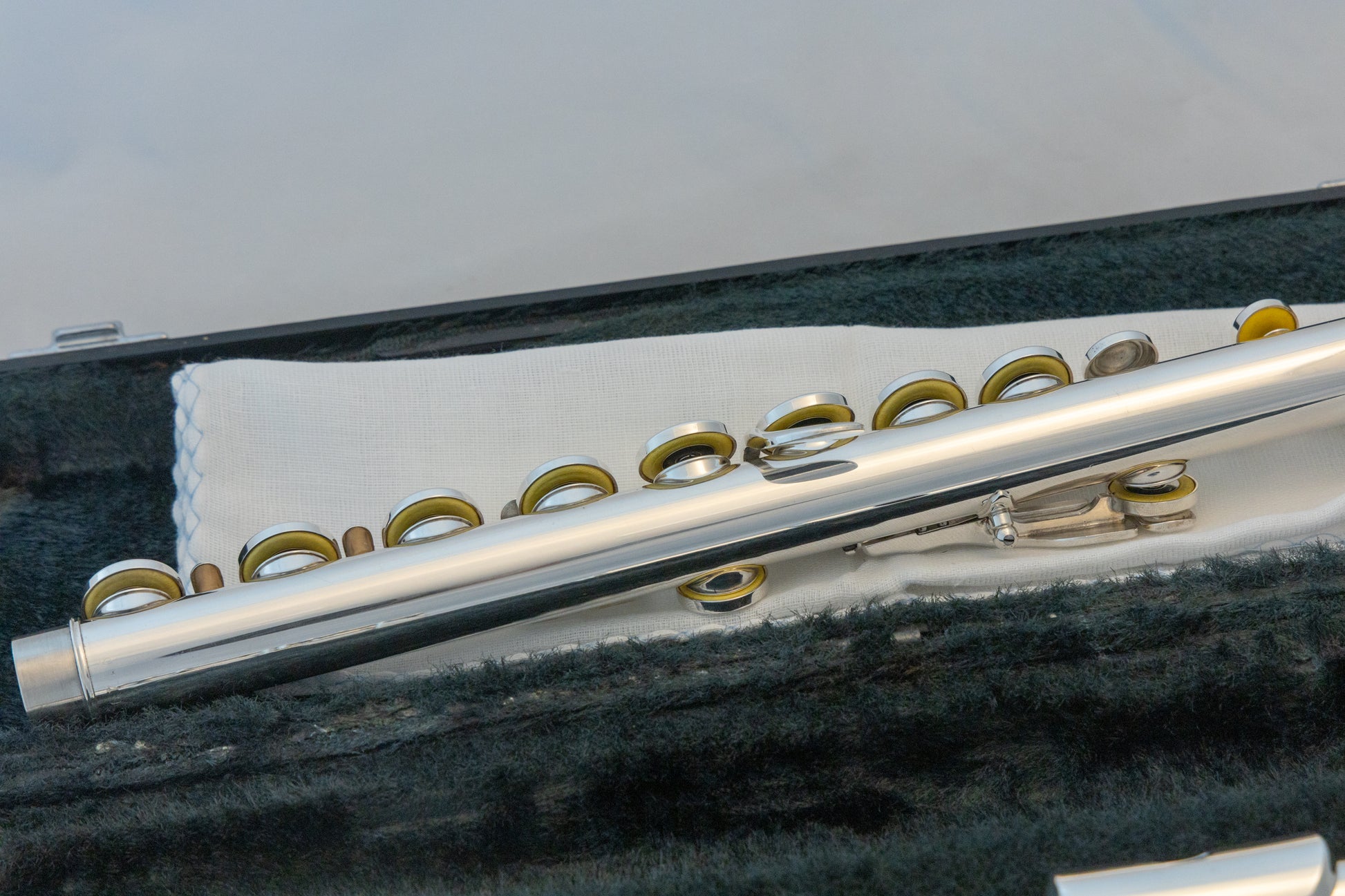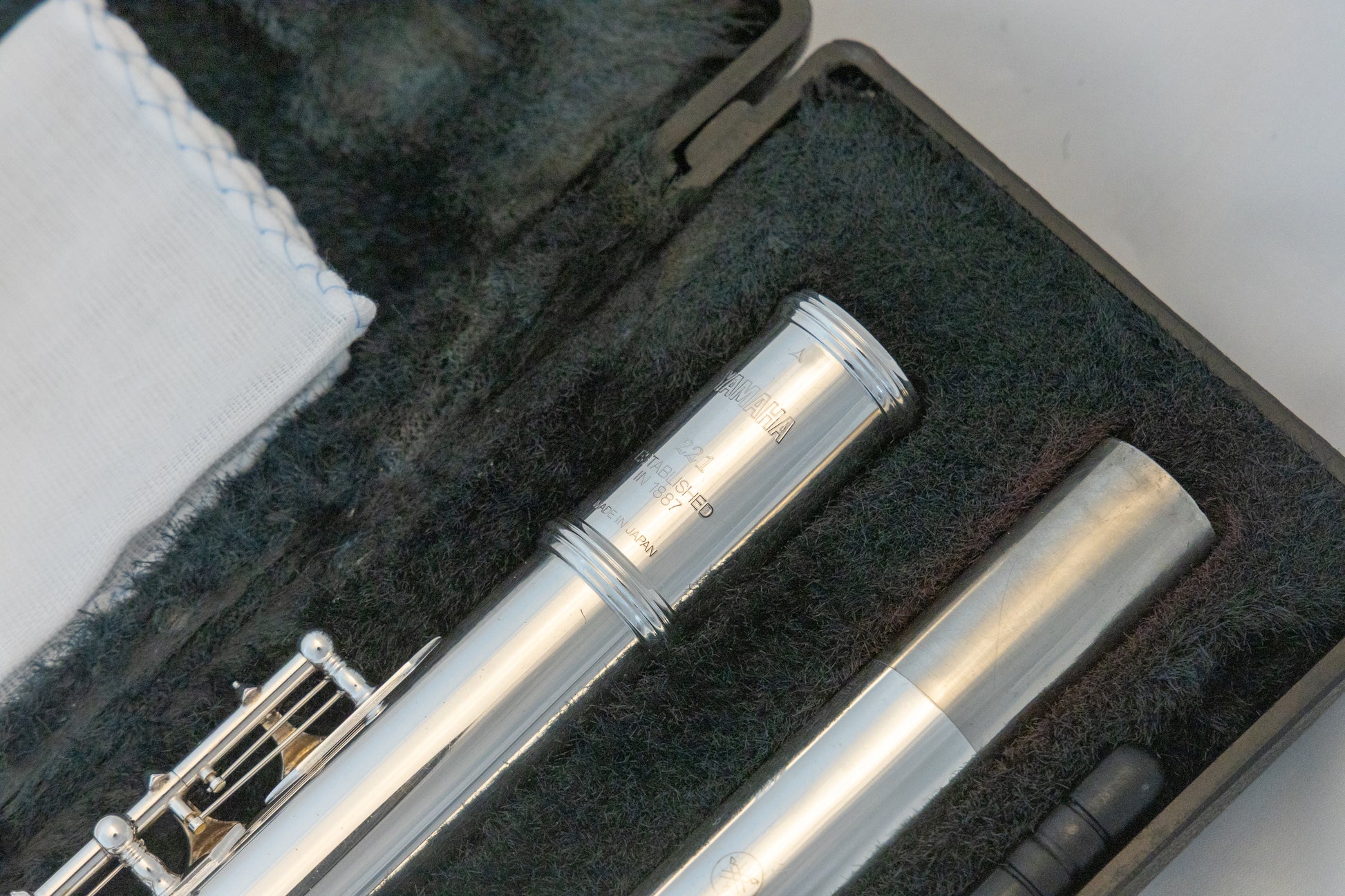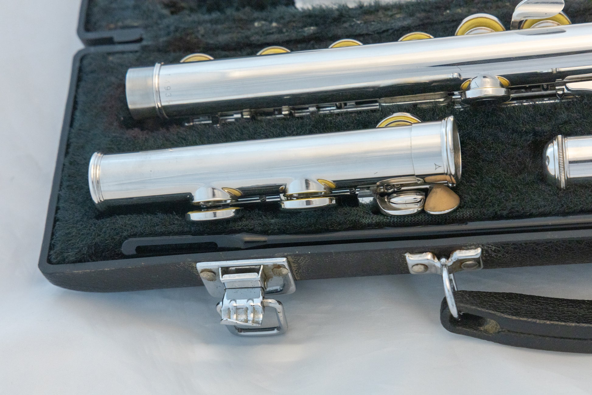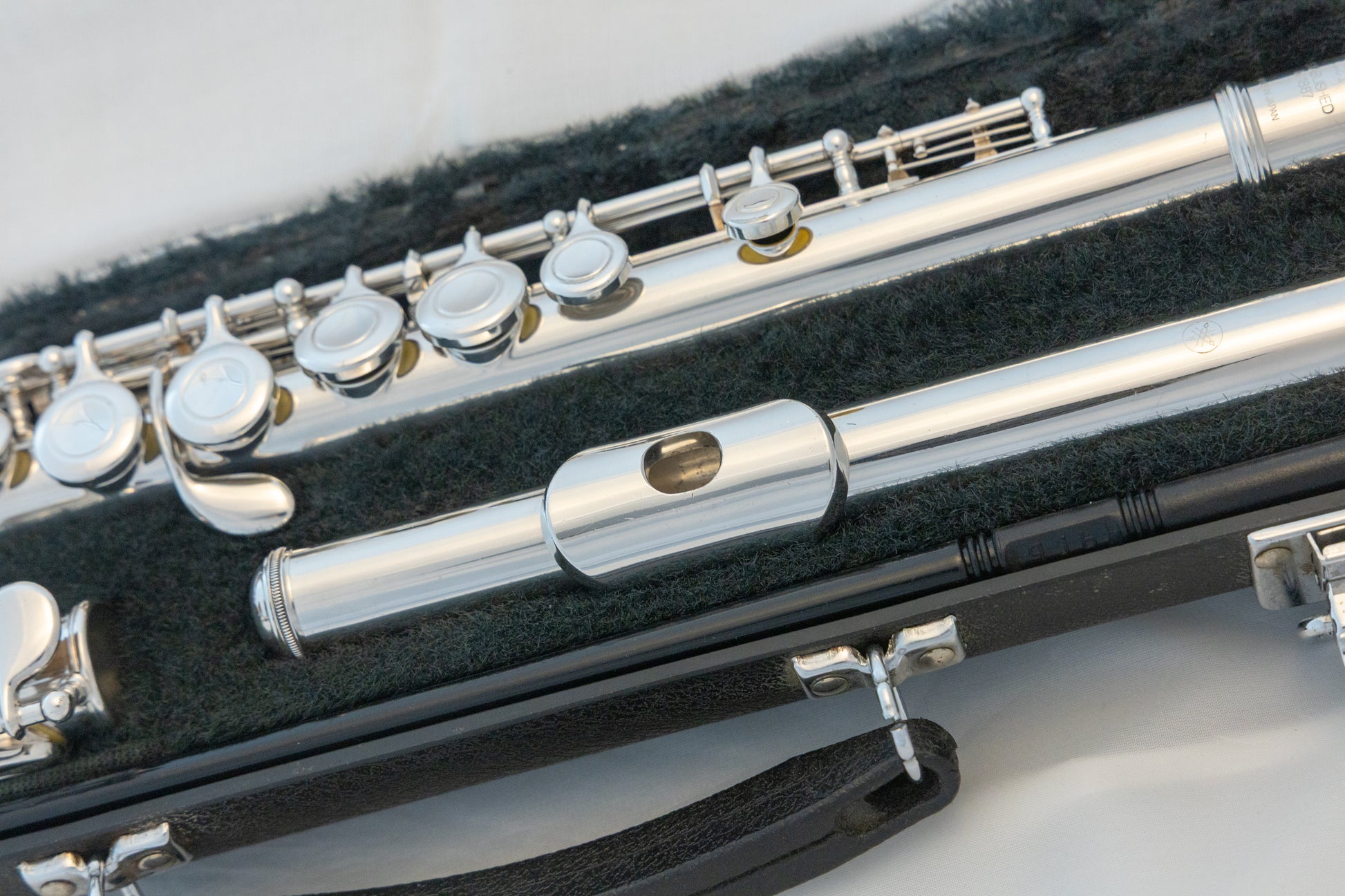 Yamaha YFL-221 silver-plated closed-hole standard flute, made in Japan, with original hard carrying case and cleaning rod. SN# 914935
