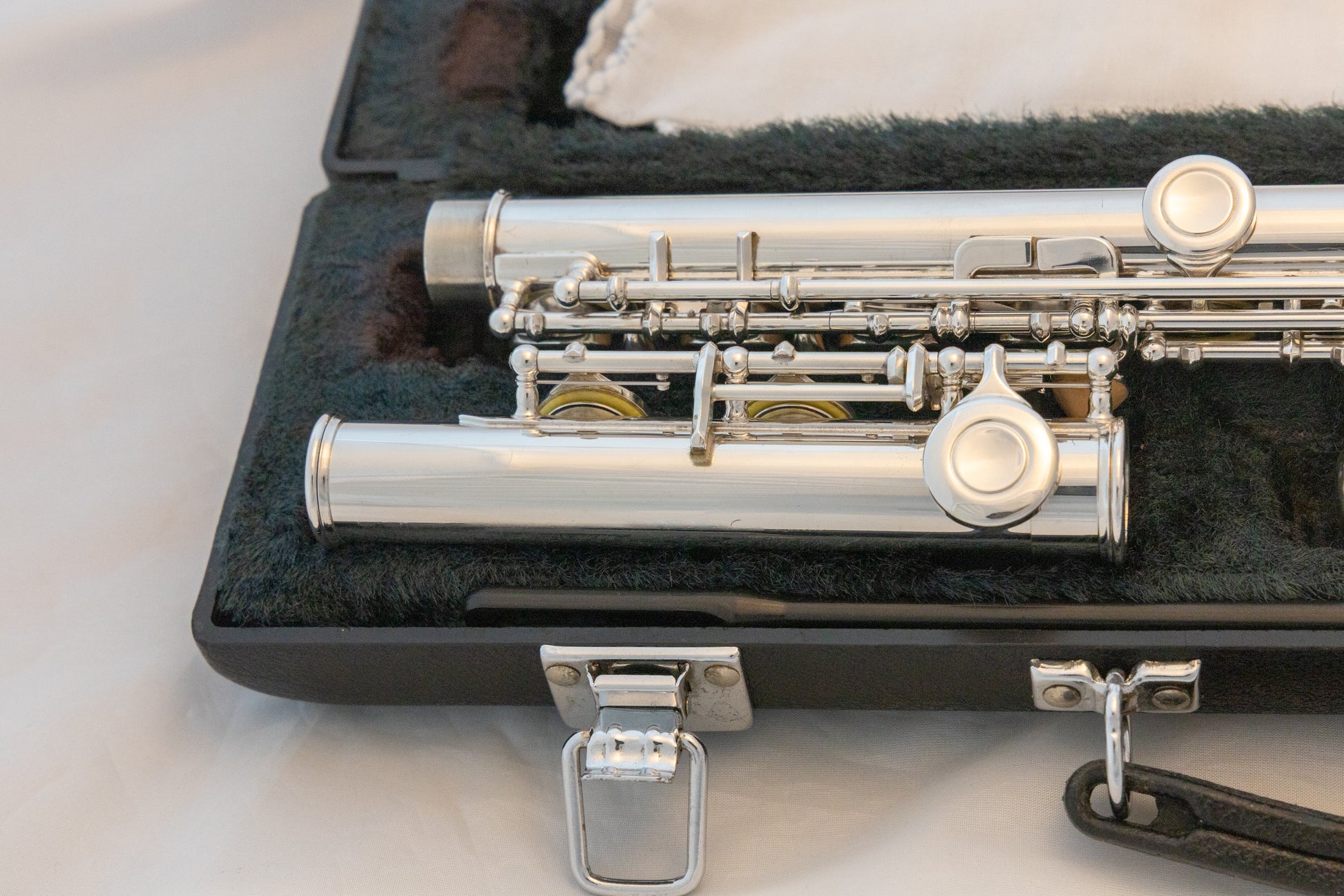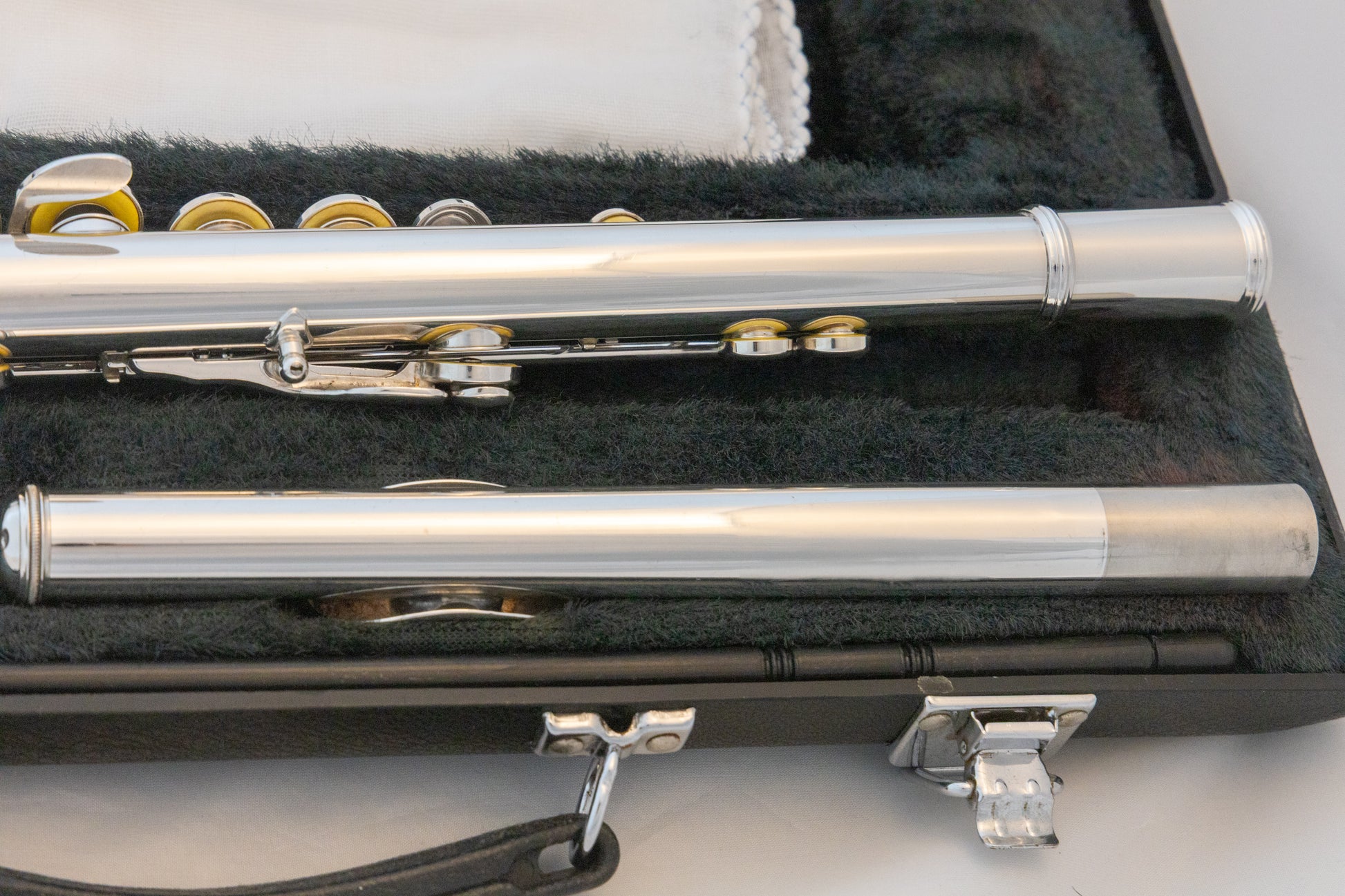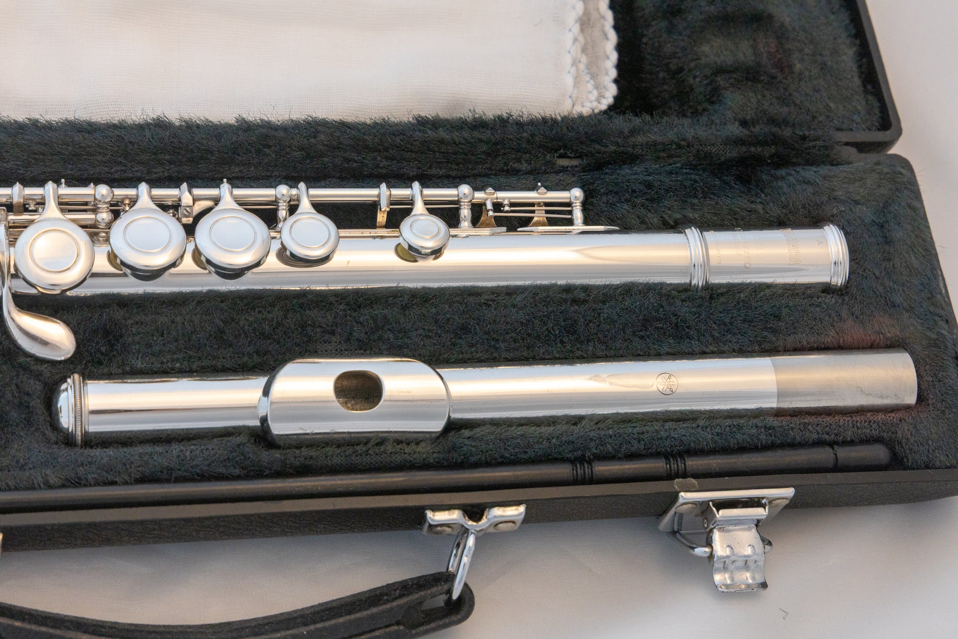 Yamaha YFL-221 silver-plated closed-hole standard flute, made in Japan, with original hard carrying case and cleaning rod. SN# 927124