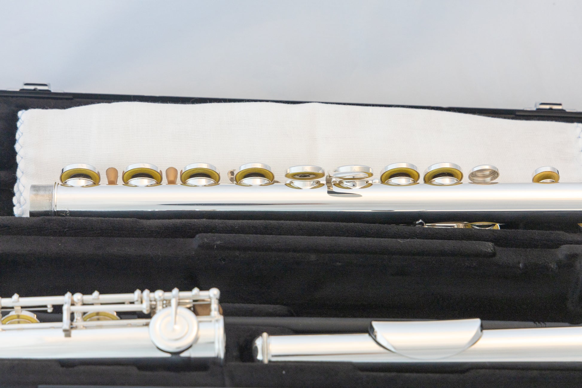 Yamaha YFL-222 standard silver-plated, closed-hole flute, with original carrying case and cleaning rod. SN# N38582