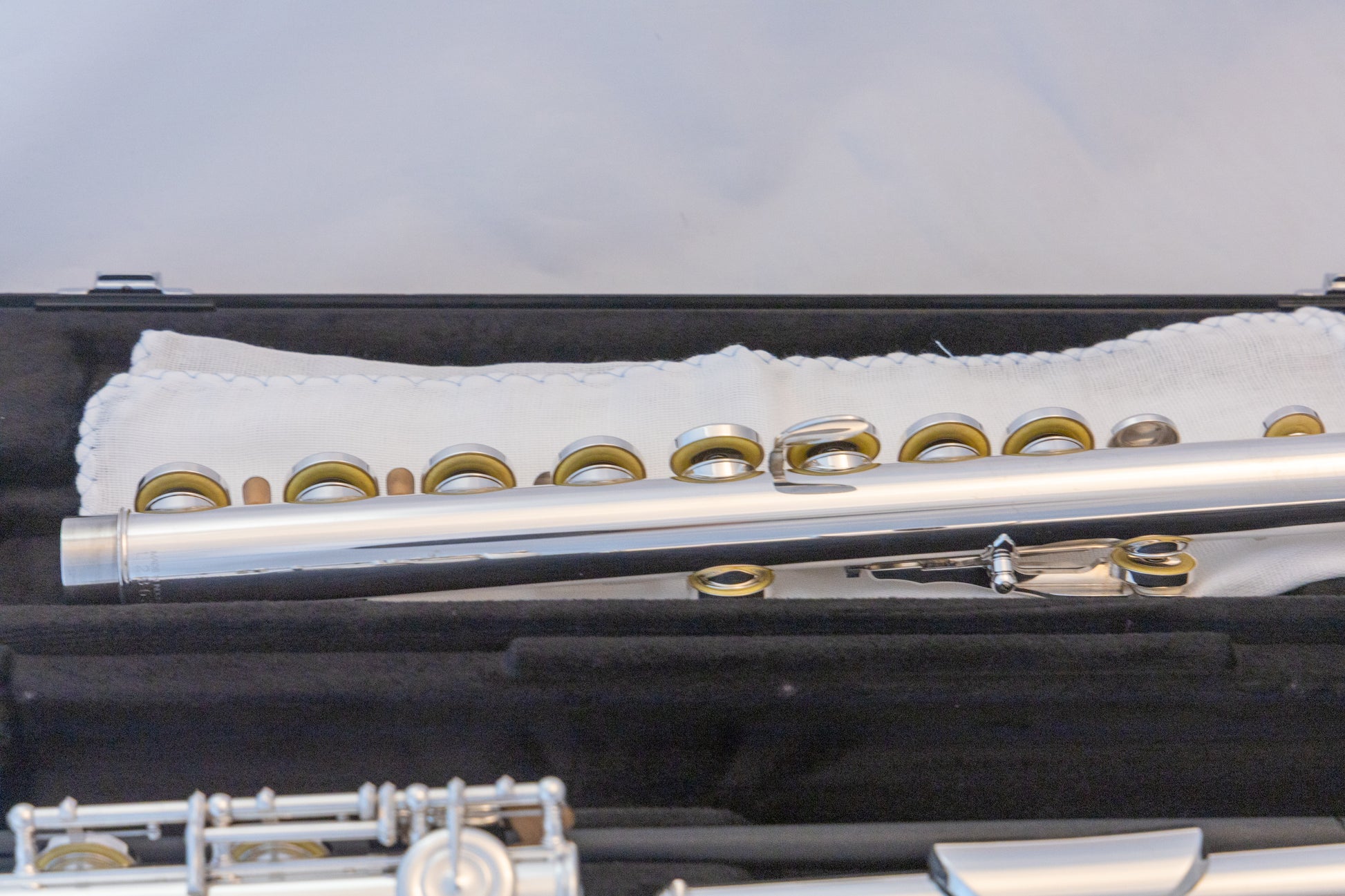 Yamaha YFL-222 standard silver-plated, closed-hole flute, with original carrying case and cleaning rod. SN# L28634