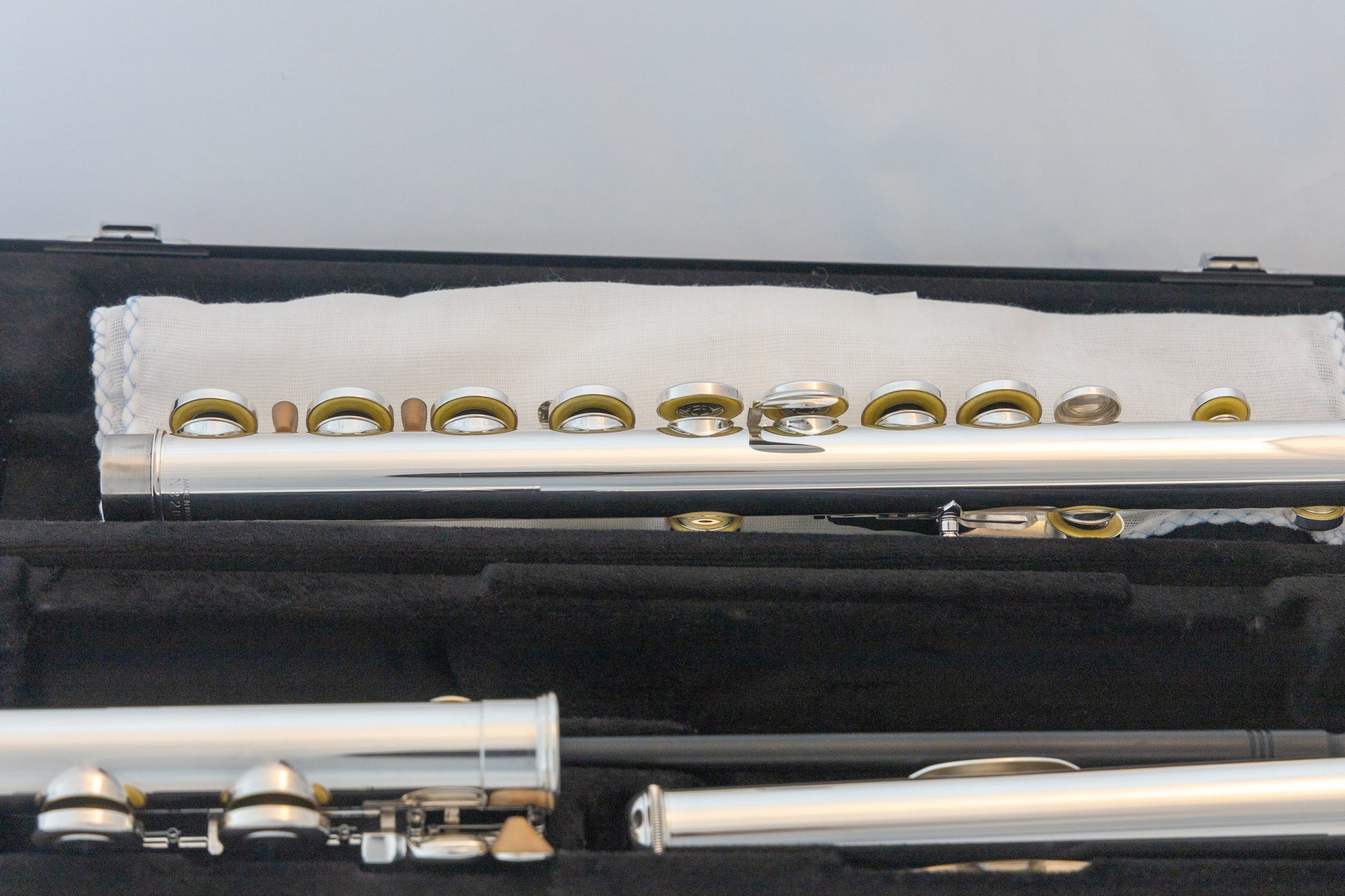 Yamaha YFL-222 standard silver-plated, closed-hole flute, with original carrying case and cleaning rod. SN# M06573