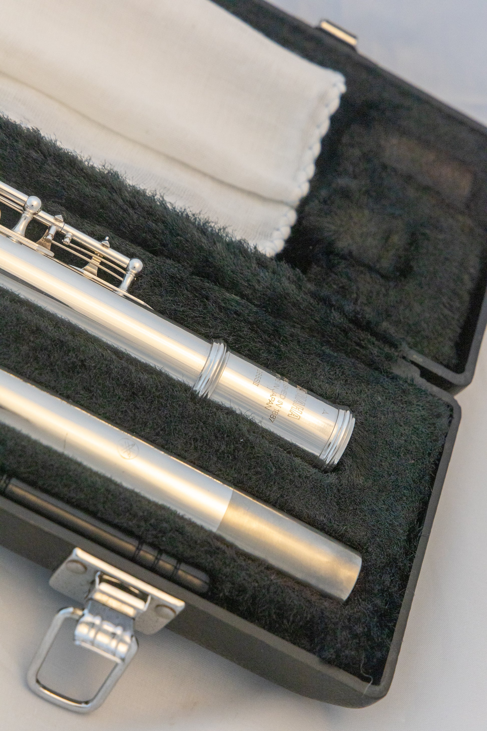 Yamaha YFL-285S II intermediate silver-plated inline-G, open-hole flute, with original hard case carrying. Made in Japan. SN#