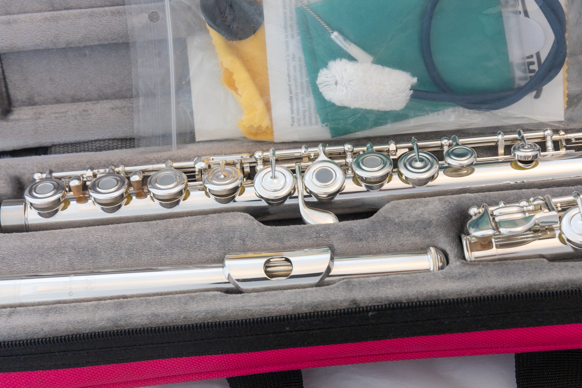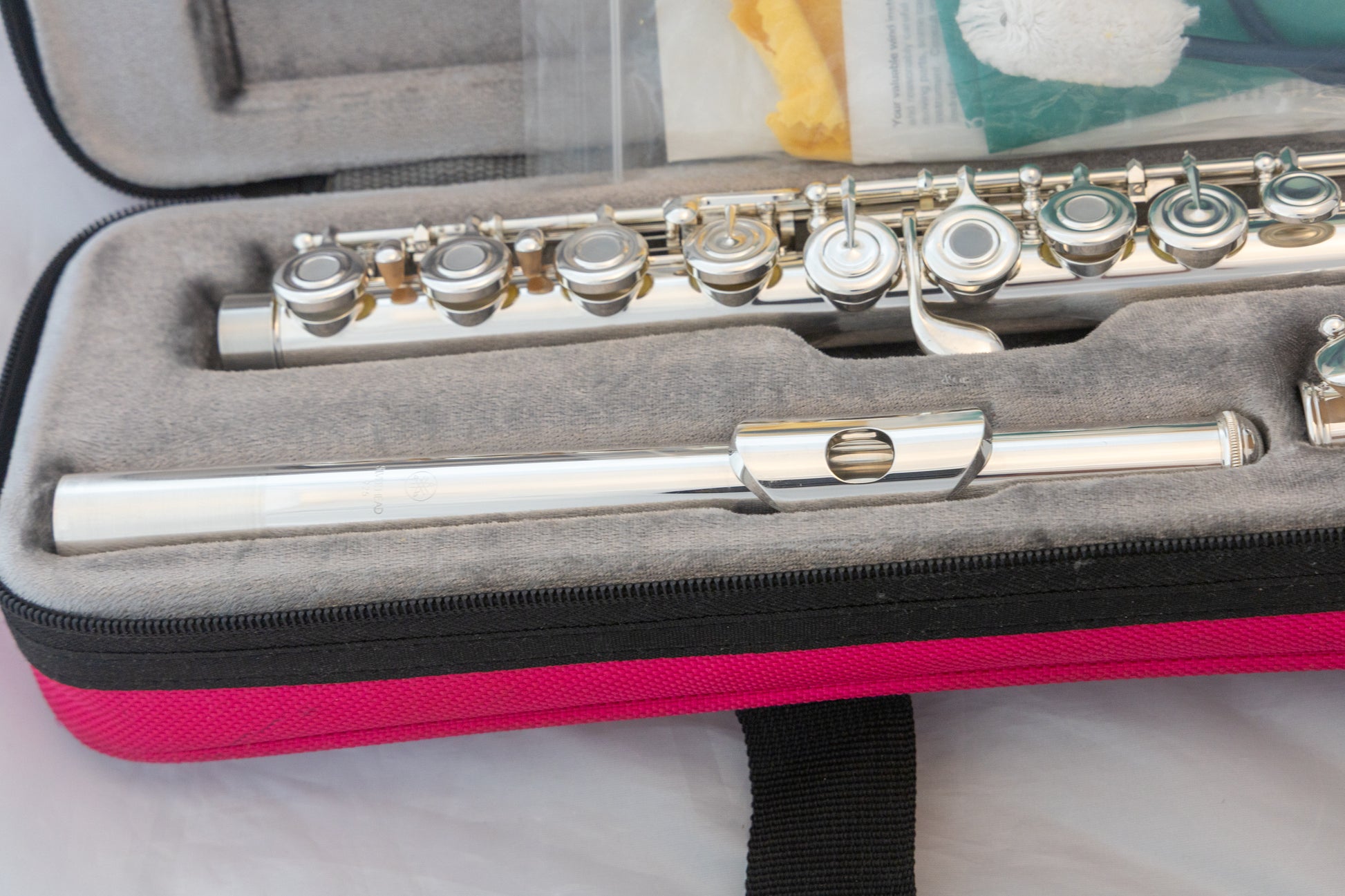 Yamaha YFL-362H intermediate open-hole flute, with 925 sterling silver headjoint, low-B foot, offset-G, padded carrying bag