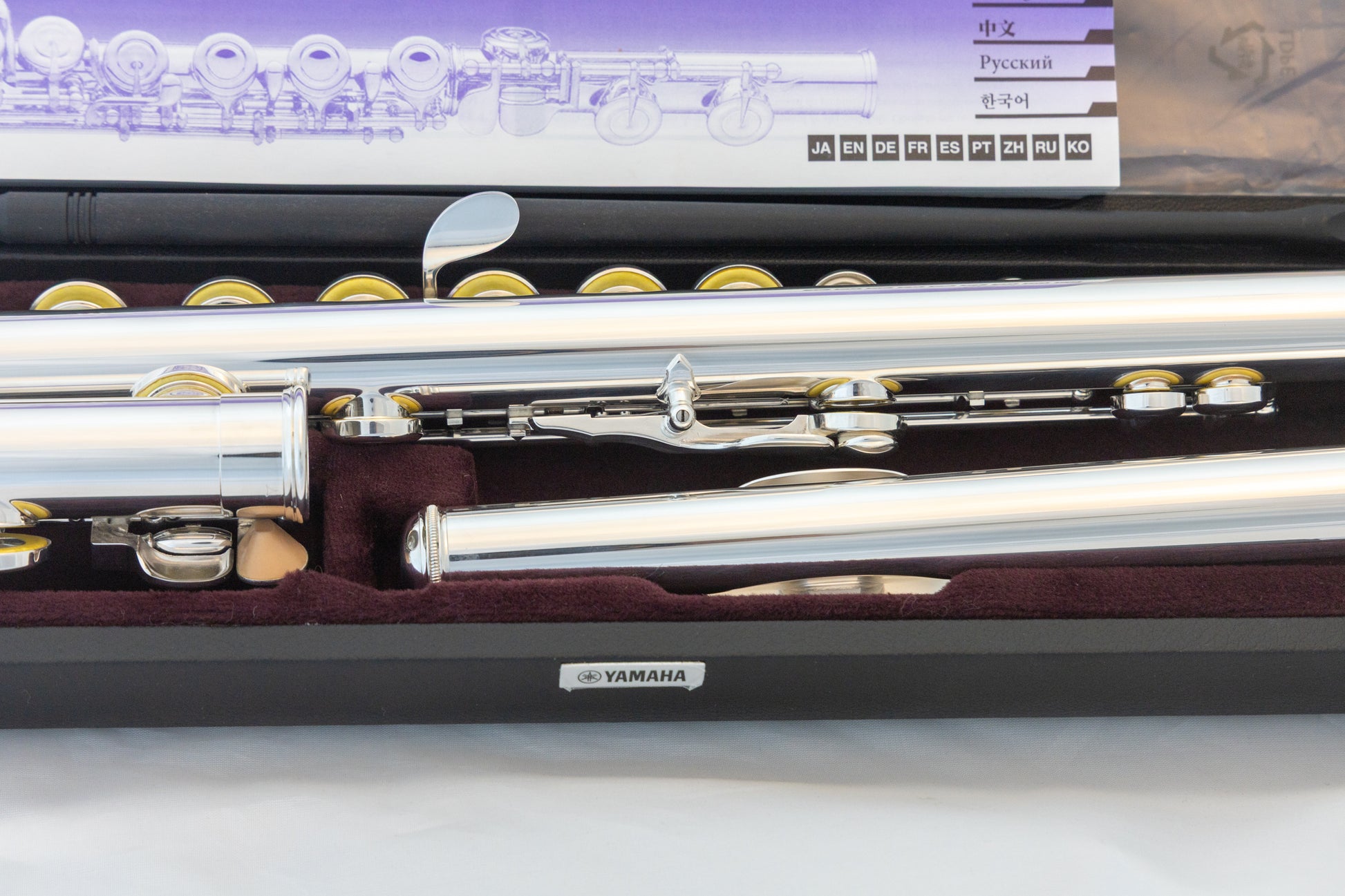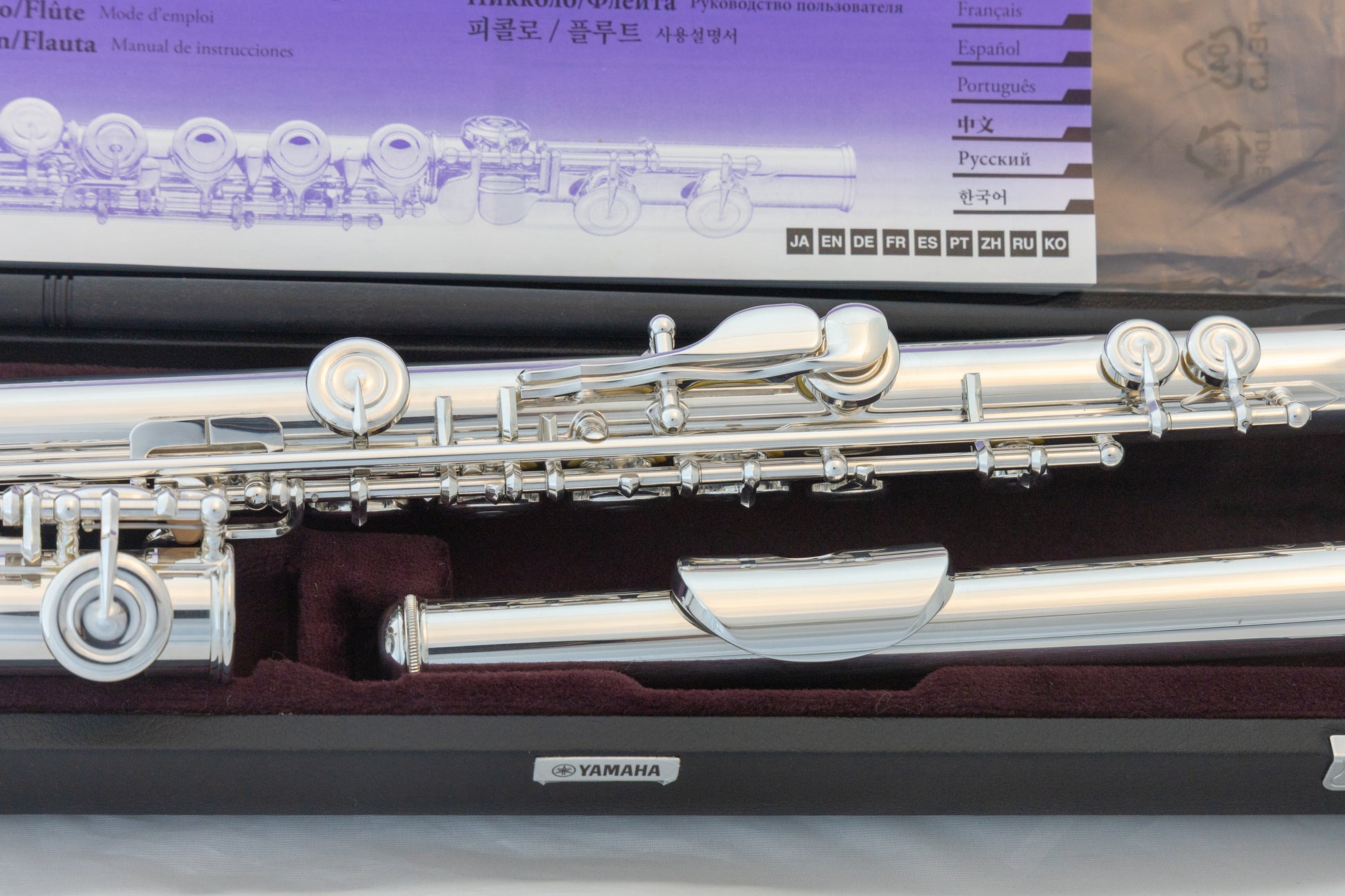 Yamaha YFL-382 intermediate open-hole flute, with 925 sterling silver headjoint, low-C foot, inline-G, with original hard case and carrying bag