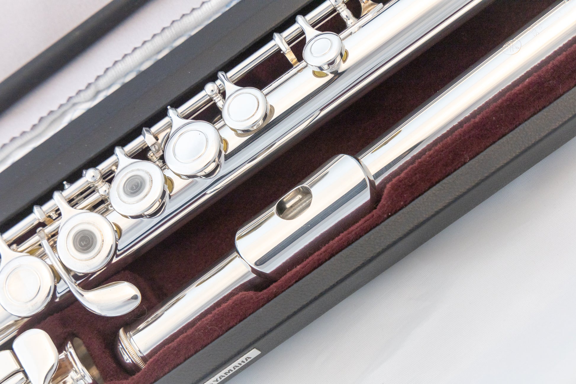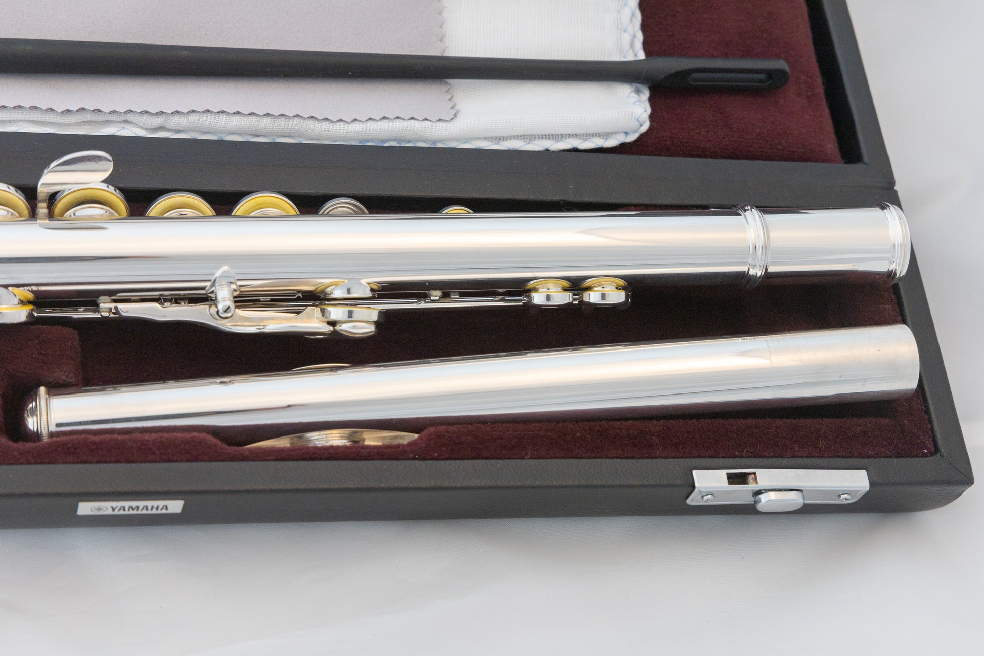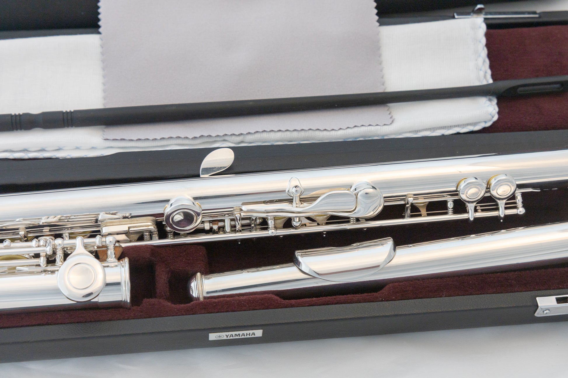 Yamaha YFL-461H intermediate all sterling silver open-hole flute with low-B foot, offset-G. Original case and padded carrying bag. SN# 418657