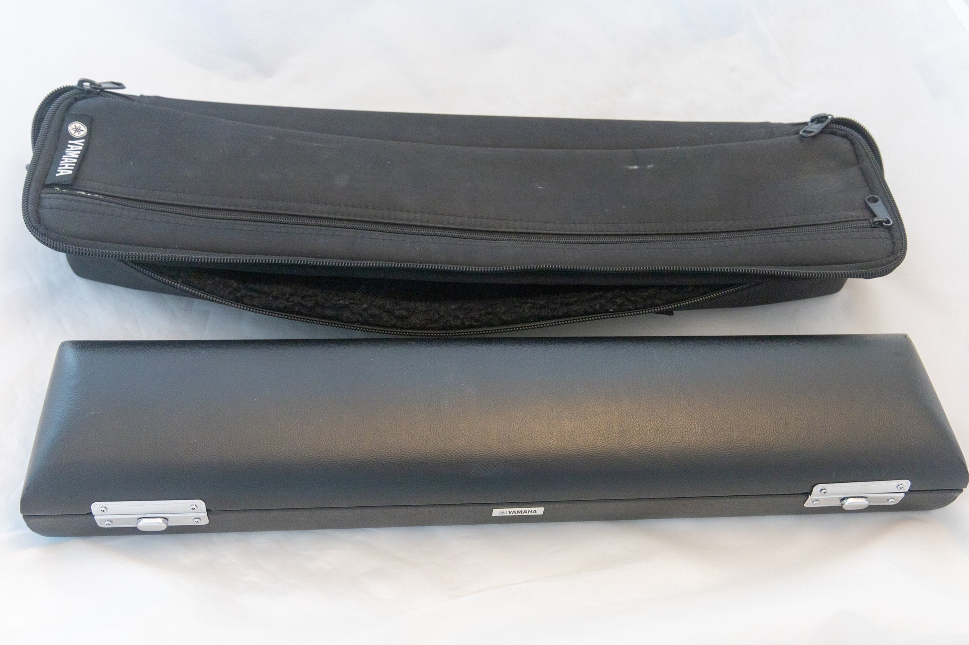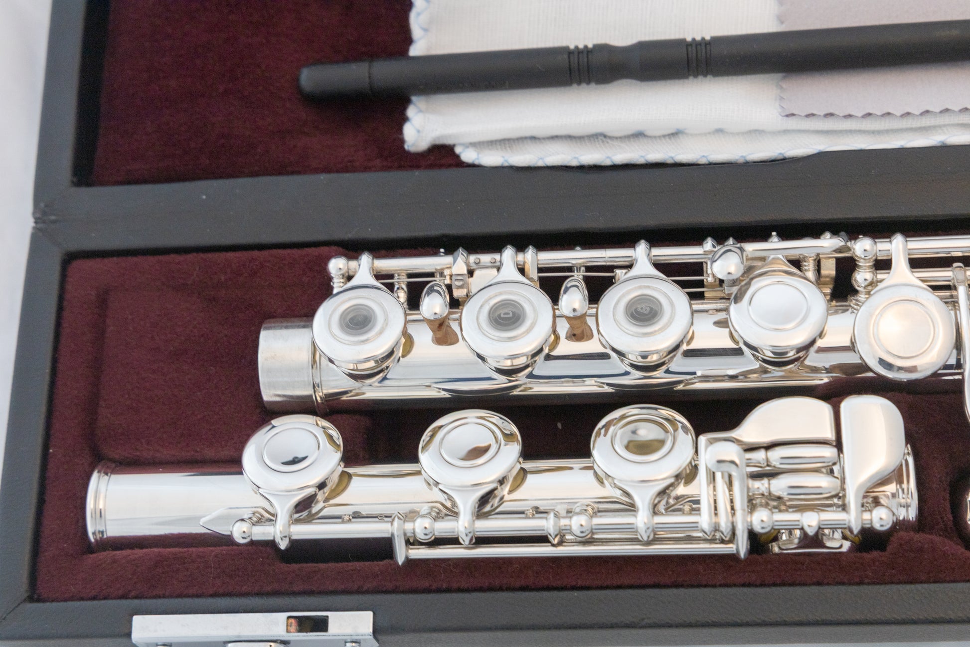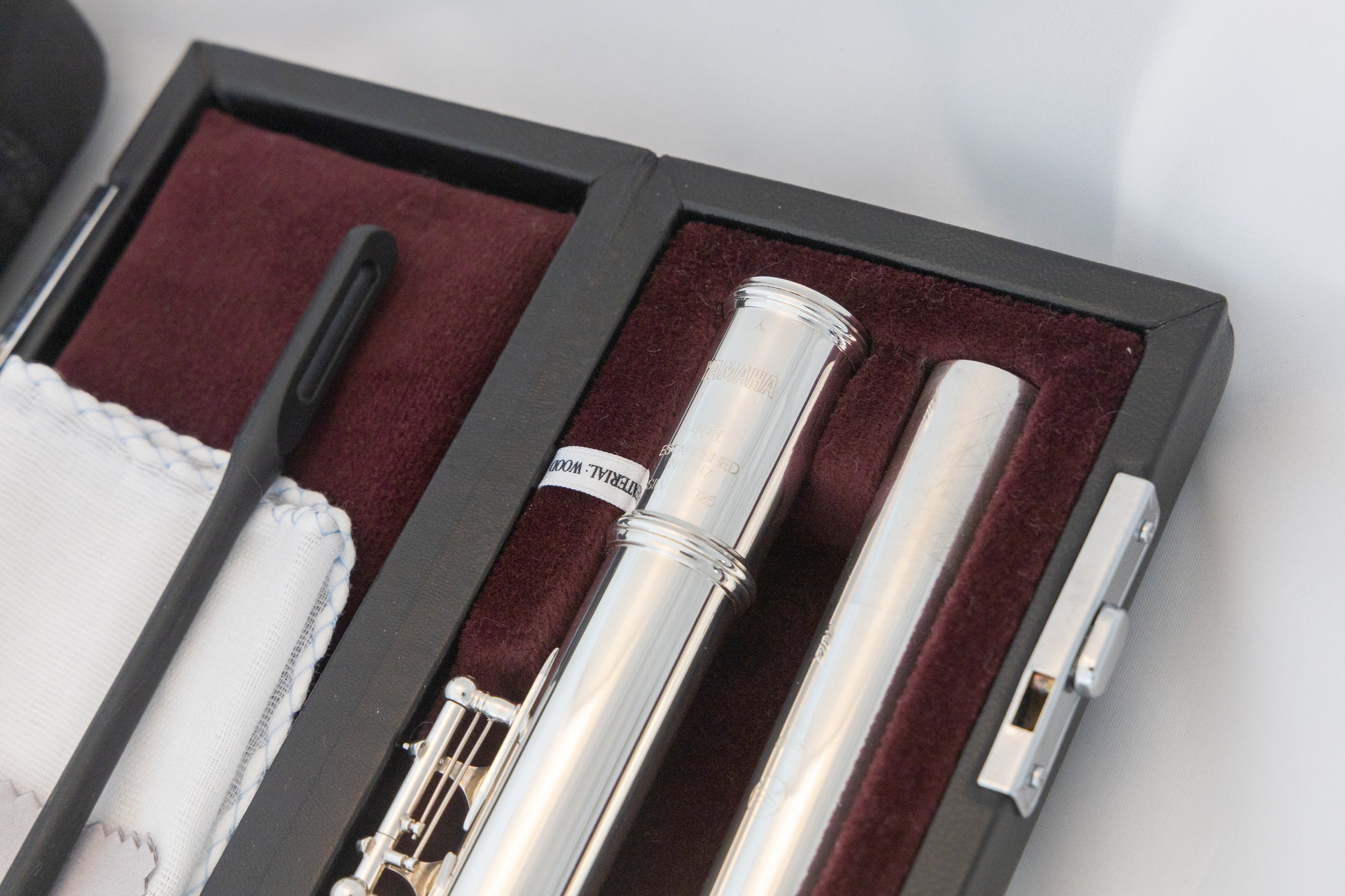 Yamaha YFL-461H intermediate all sterling silver open-hole flute with low-B foot, offset-G. Original case and padded carrying bag. SN# 418657