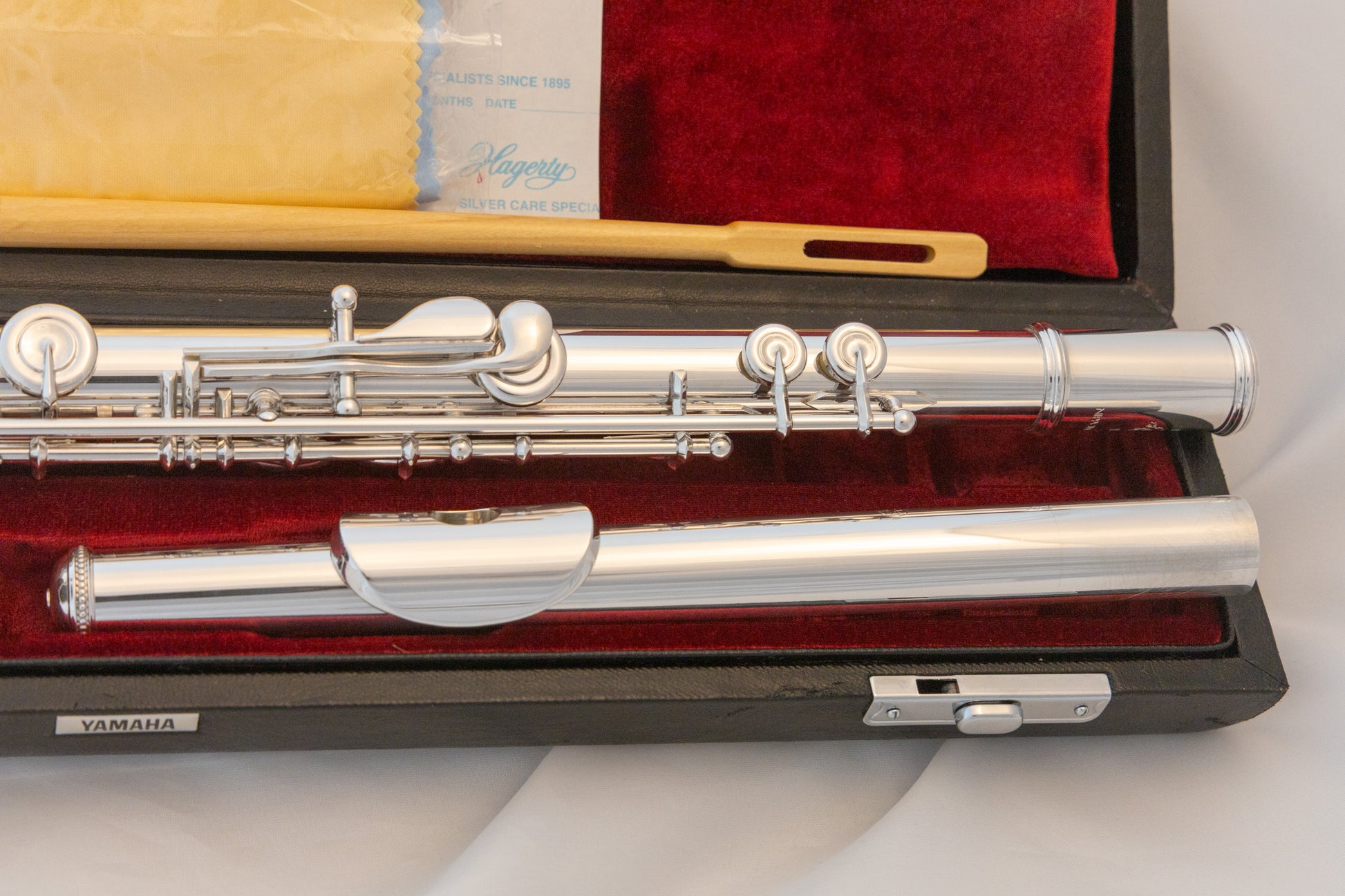 Yamaha YFL-561H Professional Flute, with original sterling silver CY cut headjoint, solid 925 silver body and foot joint, offset-G, low B foot, made in Japan, with original hard case and leather carrying case